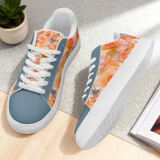 Floral Embosses: Roses 03-01 "Apricot Bloom Essential" Low Top PU Leather Sneakers