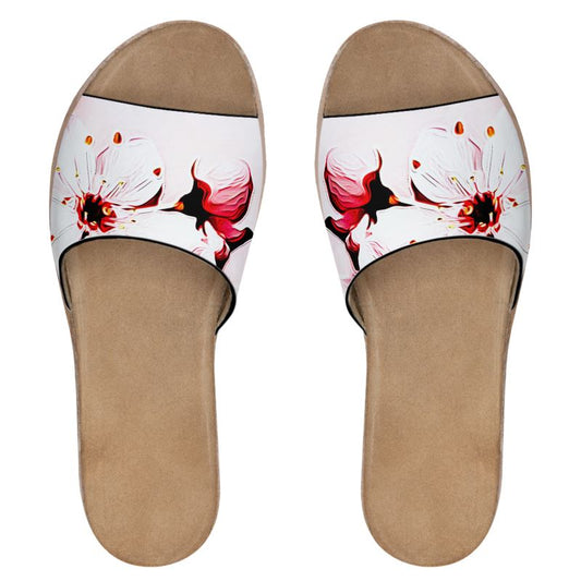 Floral Embosses: Cherry Blossoms Leather Slide Sandals