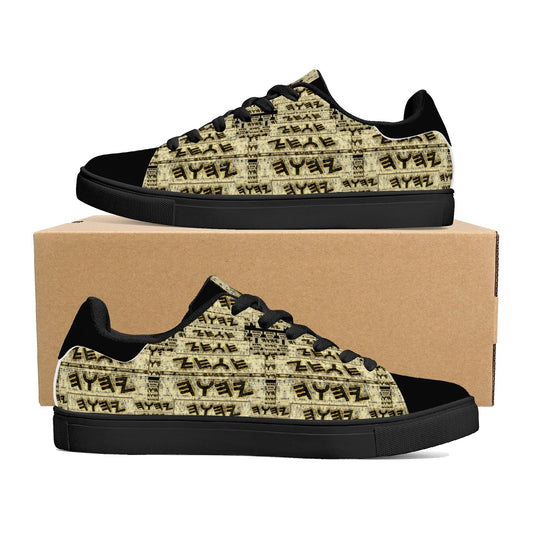 Yahuah Logo 03 - Black Men's PU Leather Low Top Sneakers
