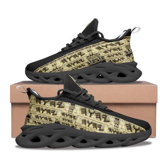 Yahuah Logo 03 - Black Mesh Knit Flex Unisex Sneakers (Black/White)