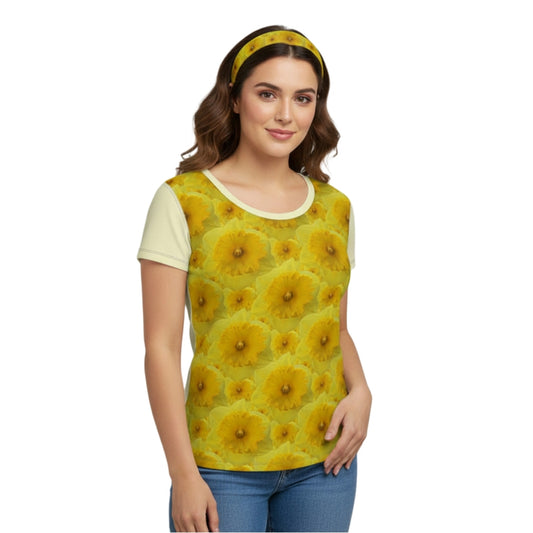 TRP Floral Print 09: Tulips 01 Designer Loose Fit Cap Sleeve T-shirt