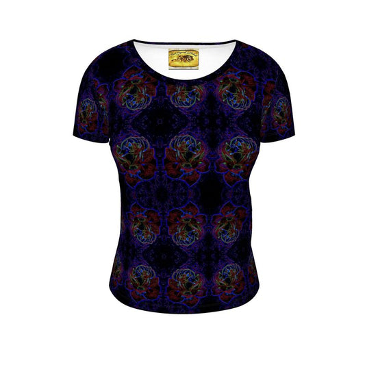 Floral Embosses: Roses 06-01 Ladies Designer Scoop Neck T-shirt