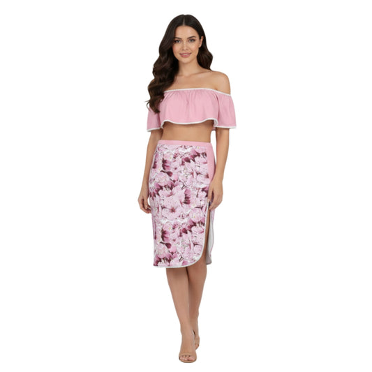 TRP Floral Print 01: Whimsical Sakura Symphony 01-02 Ruffle Tube Top & High Slit Skirt Set