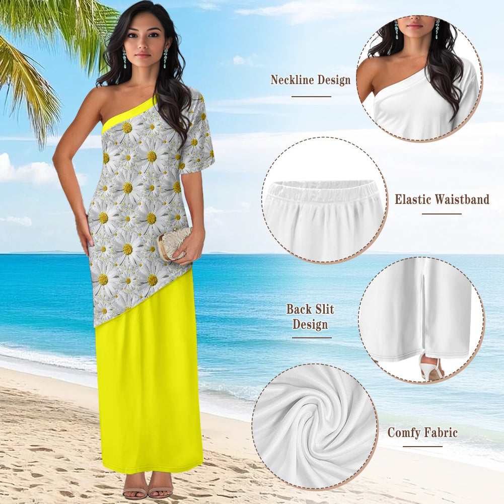 TRP Floral Print 08: English Daisies 01 Designer One-shoulder Two Piece Dress