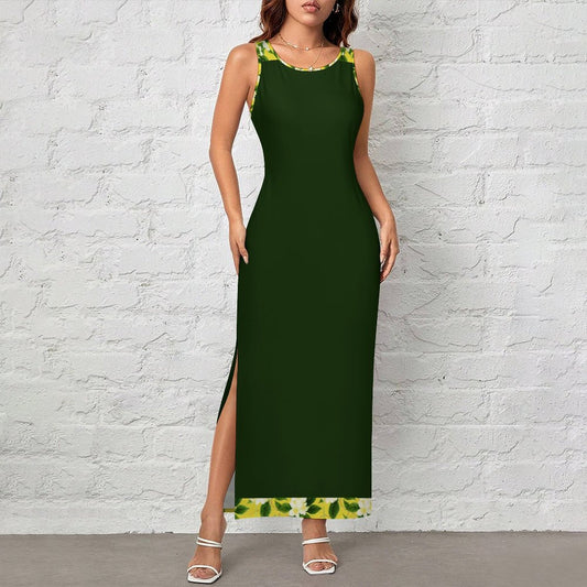 TRP Floral Print 10: Jasmine Vine 01-01 Designer Fitted Sleeveless Slit Maxi Dress