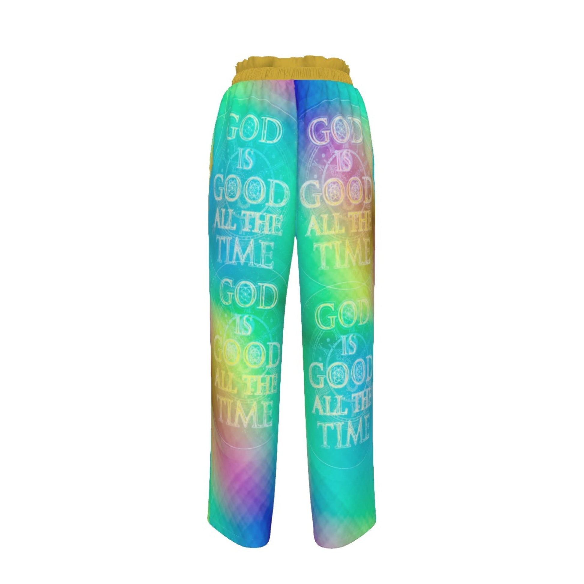 Step into a garment that serves as a living testimony. These Chroma-Shift Art-to-Wear: God is Good All The Time 01-03 Faux Silk Open-Bottom Lounge Joggers are more than just casual wear—they are a declaration of the Creator’s unyielding faithfulness. Designed with a vibrant, shifting spectrum of light, this "Chroma-Shift" aesthetic mirrors the multifaceted nature of the Most High, reminding us that His goodness is not static; it is dynamic, constant, and ever-present.