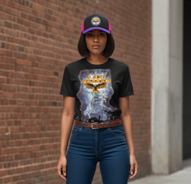 - Divine Symbolism: The "lightning or a supernova" effect on the shirt, paired with the celestial burst on the cap, represents the pillar of cloud and fire that continues to guide our journey.