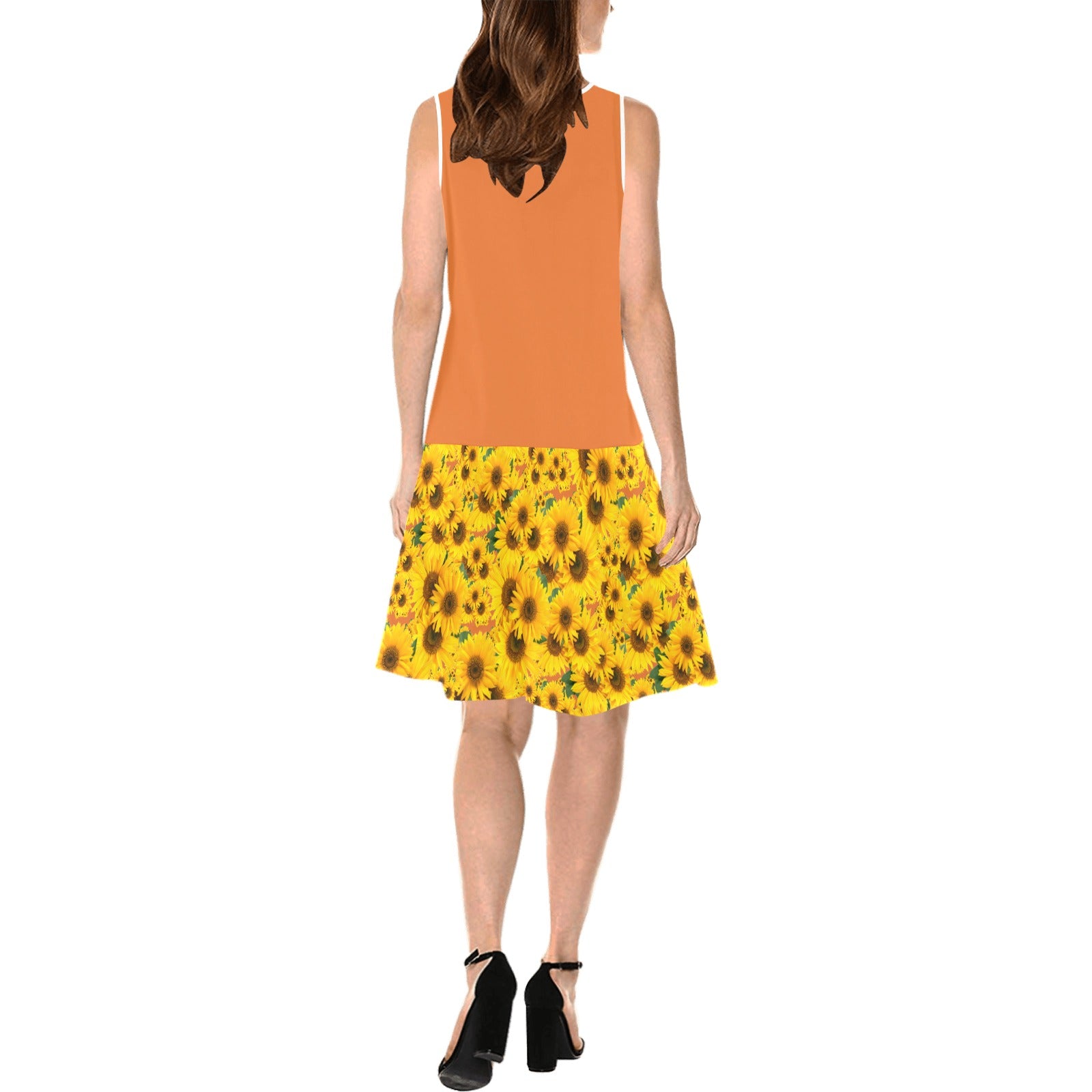 TRP Floral Print 04: Sunflowers 01 Designer Sleeveless Splicing Shift Dress (5 colors)