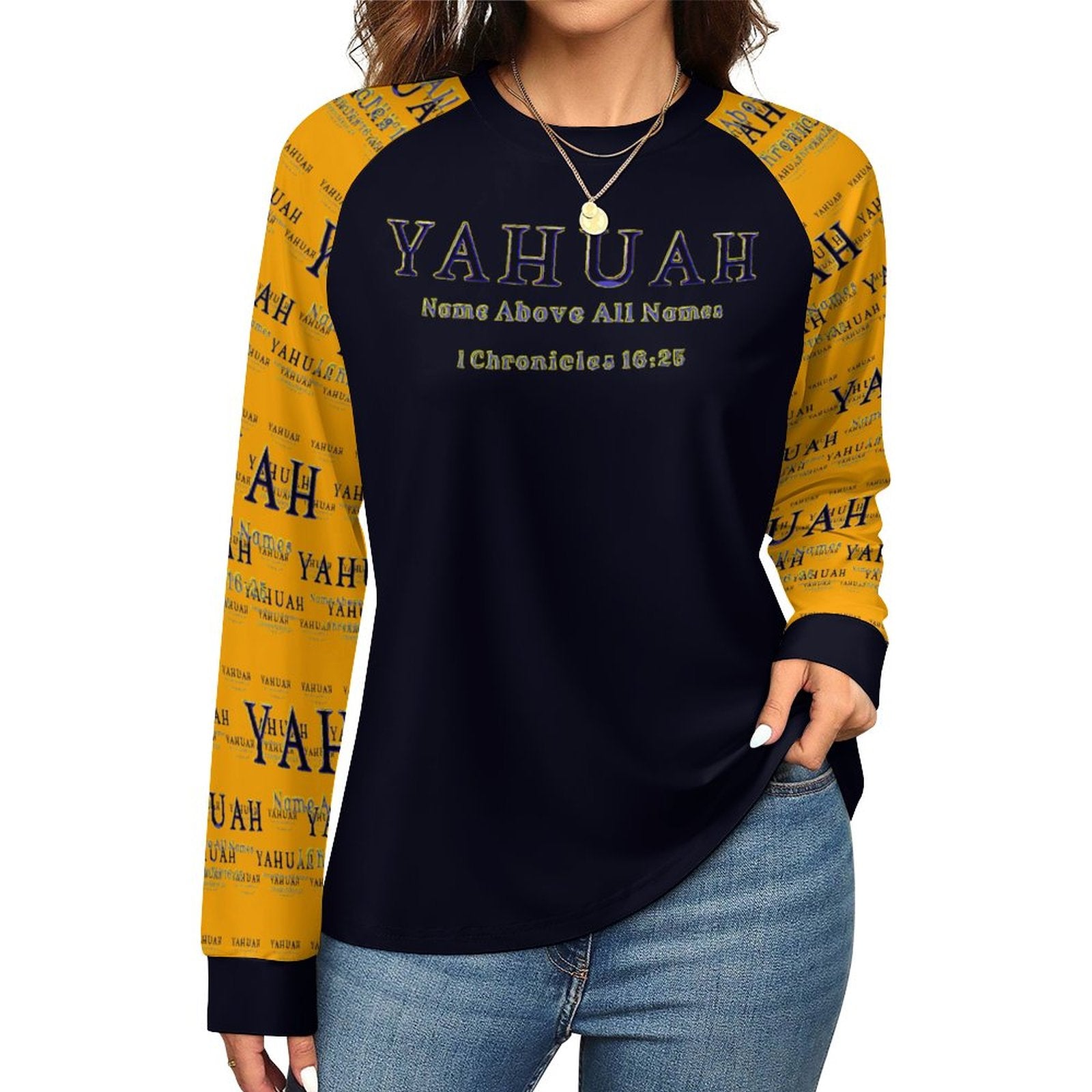 Yahuah-Name Above All Names 02-01 Ladies Designer Long Sleeve Raglan T-shirt