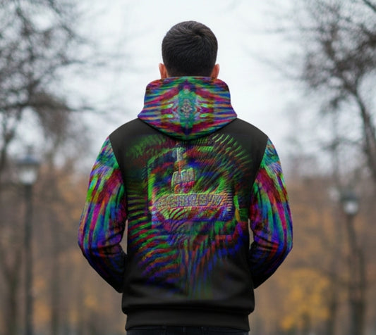 I AM HEBREW 02-02 Designer Unisex Cotton Hoodie, Black+BlackChrome