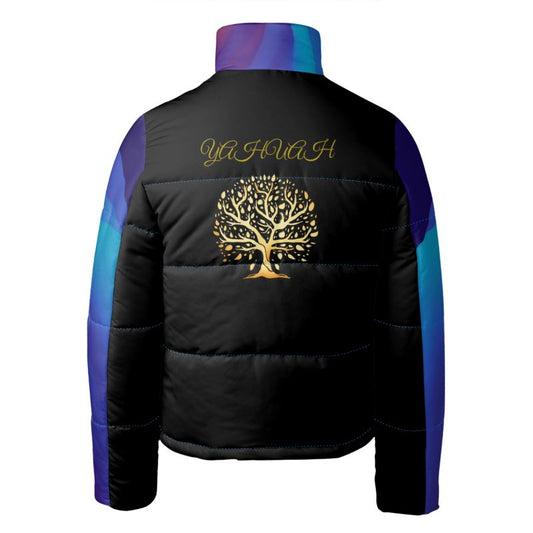 Yahuah-Tree of Life 01 Royal Men's Designer Stand Collar Puffer Jacket