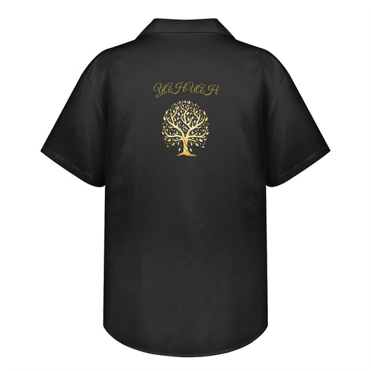 Yahuah-Tree of Life 01-01 Men's Designer Piqué Cuban Collar Shirt