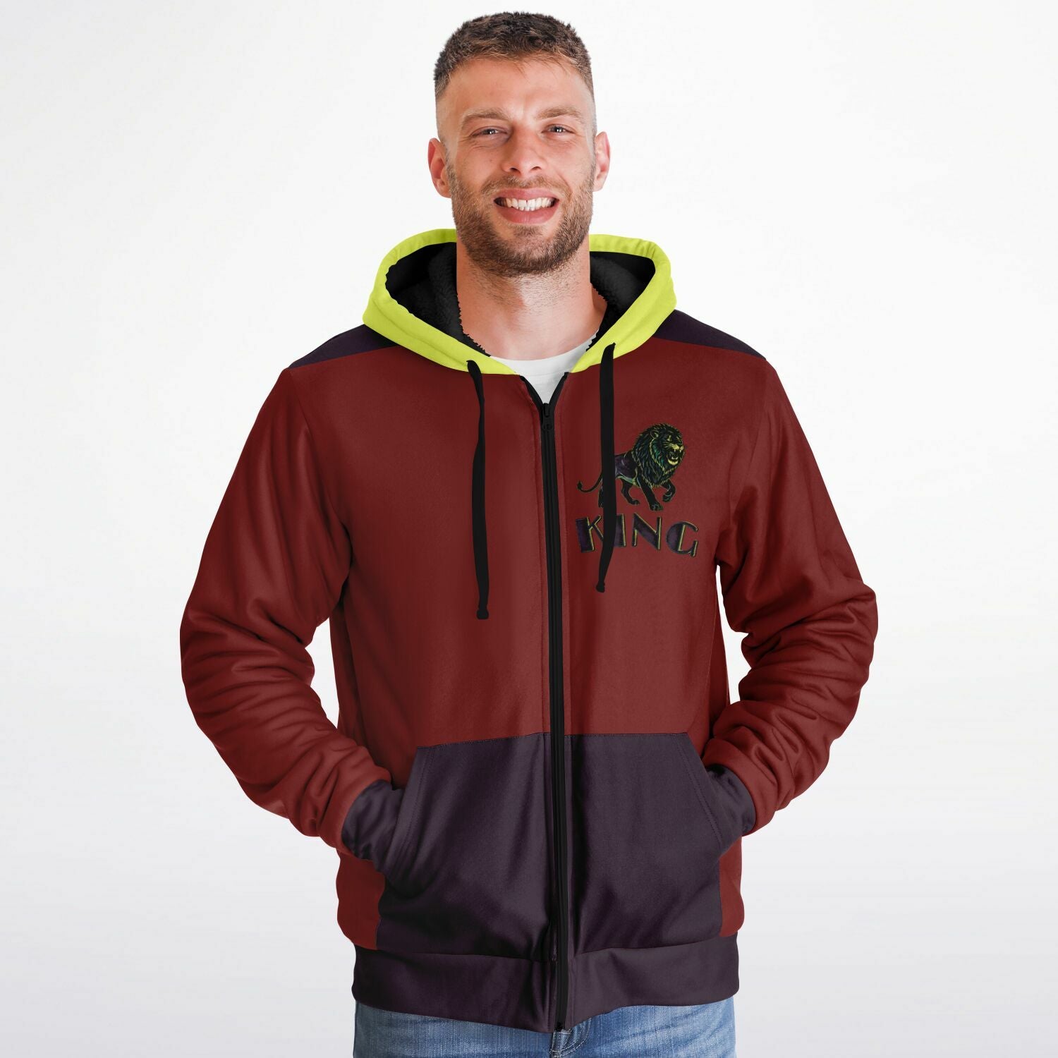 This microfleece zip-up hoodie features a soft and durable fabric. The microfleece lining on the inside will make this your most comfy zip-up hoodie ever! It also comes with a visible nylon zipper front closure. Each panel is individually printed, cut and sewn to ensure a flawless graphic with no imperfections.